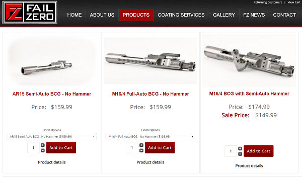 One company that makes very reliable BCGs out of nickel boron is called “FailZero.” As explained on their website, “All critical parts are coated with EXO Nickel Boron technology that provides permanent dry lubricity, extreme durability and increases both wear and corrosion resistance. Our patented Nickel Boron coating will reduce friction and improve the overall performance of your rifle.”